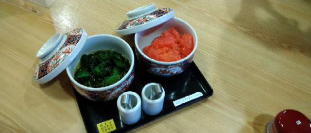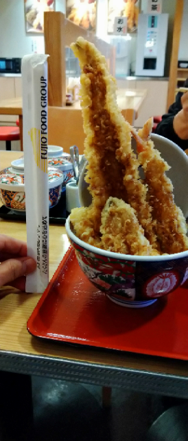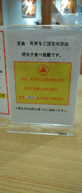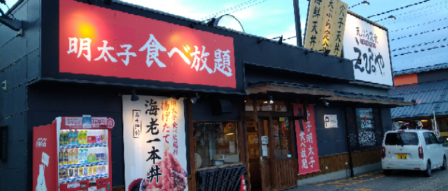 夕食は、富山県 天麩羅えびのや。明太子が無料で食べ放題!!