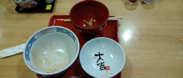 天丼は海鮮天丼で穴子天麩羅が巨大です。