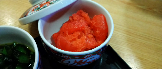 夕食は、富山県 天麩羅えびのや。明太子が無料で食べ放題!!